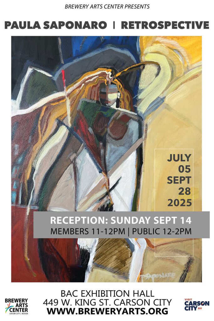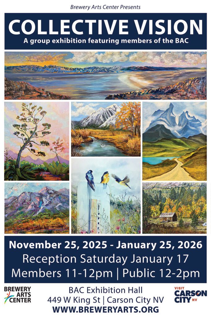 Experience the spirit of the West through the eyes of 32 artists at the Brewery Arts Center’s group exhibition, Western Feel. Featuring talented works from Carson City, Carson Valley, Virginia City, Reno, and beyond, This showcase captures the essence of Western life, landscapes, and culture. From sweeping desert vistas to rugged mountain scenes and vibrant depictions of local heritage, each piece reflects the unique charm and beauty of our region. Don’t miss this celebration of creativity and community, uniting the best of northern Nevada’s artistic talent under one roof.
